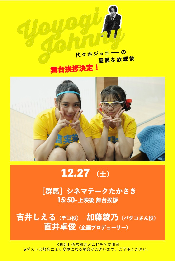 『代々木ジョニーの憂鬱な放課後』上映に併せまして、舞台挨拶が決定いたしました。