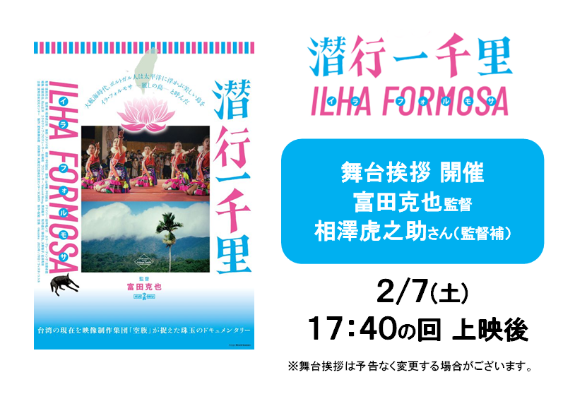 『潜行一千里 ILHA FORMOSA』上映に併せまして、舞台挨拶が決定いたしました。