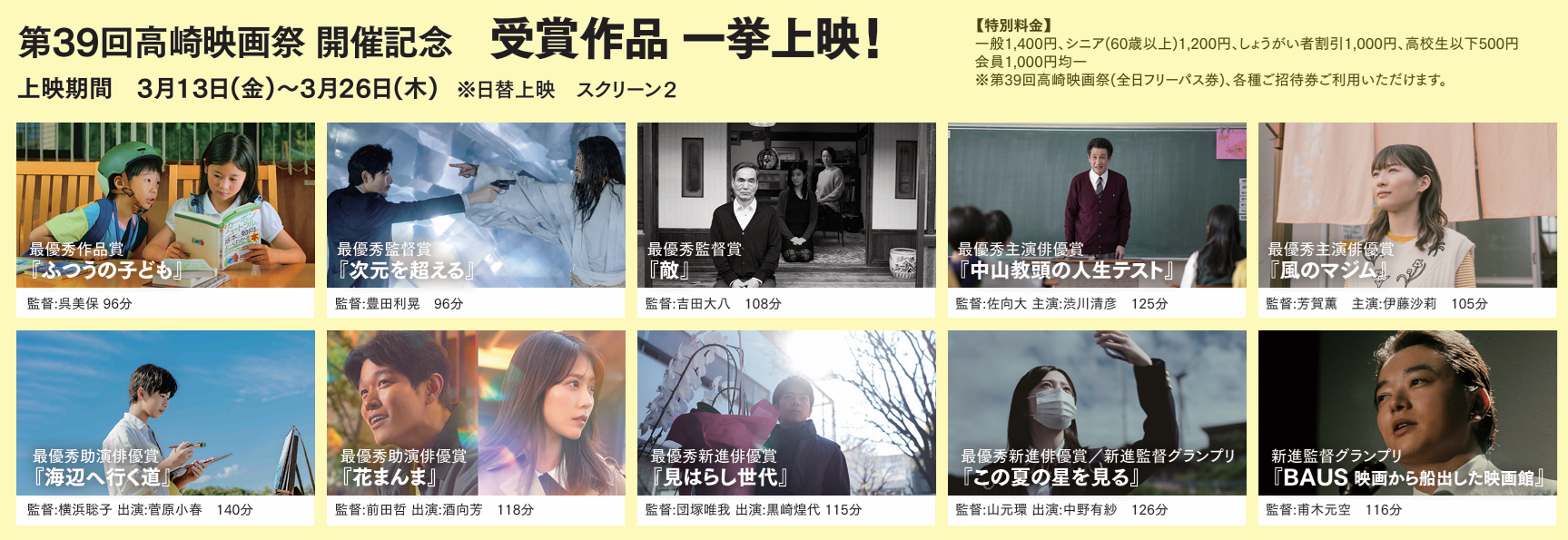 3/13(金)より「第39回高崎映画祭 開催記念 受賞作品一挙上映」