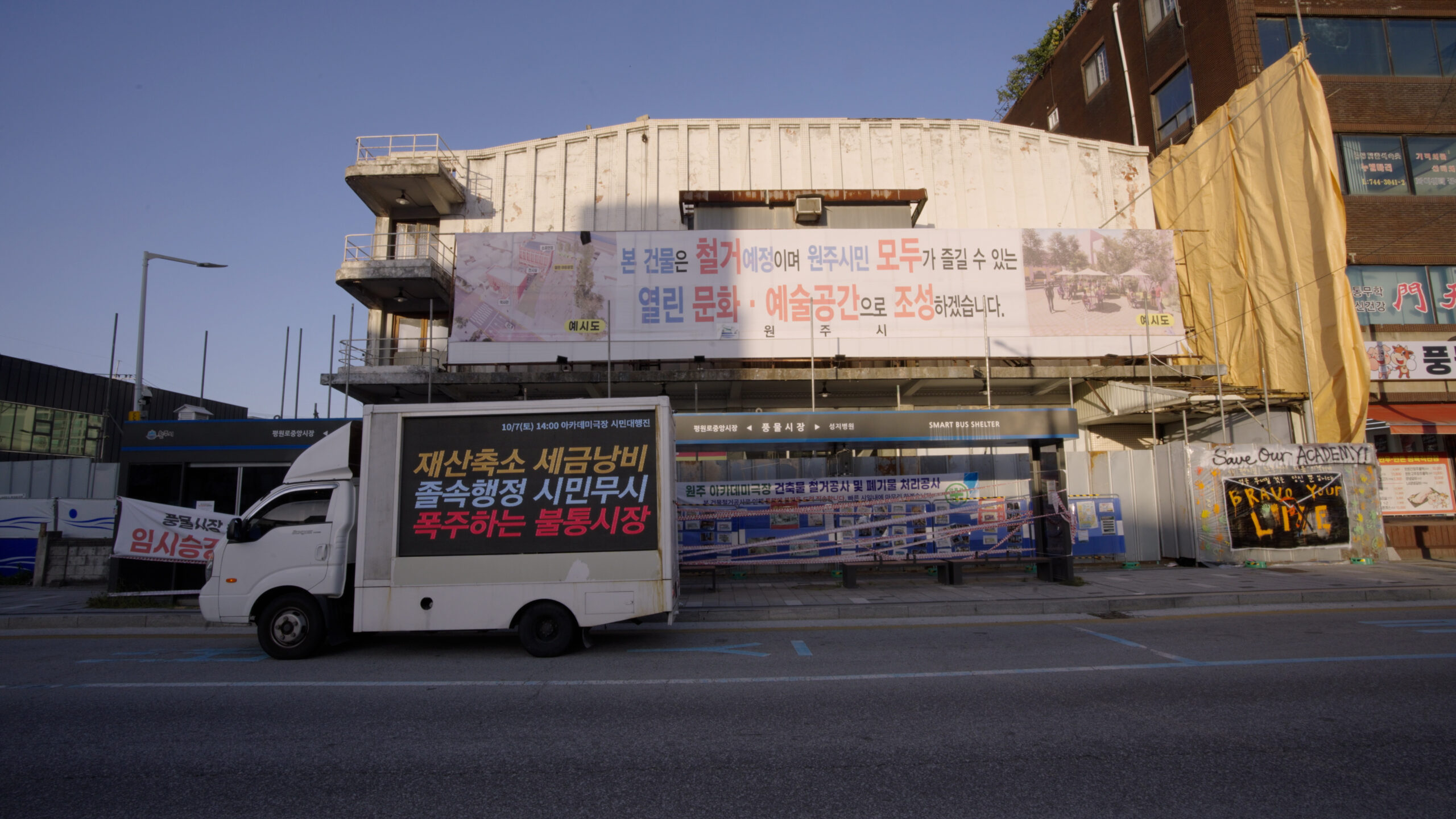 [市民キム・グィミン][アカデミーで出会ったもの][黄色いテント]からなるオムニバス映画。原州(ルビ:ウォンジュ)市にある1963年に開館した映画館「アカデミー劇場」。映画館としての営業を終えた後も建物は残され、2016年に保存活動が始まり、2021年には市がアカデミー劇場を購入、保存・再生することを決めた。しかし、2023年、ウォンジュ市は突如、この映画館を取り壊し、駐車場とすることを発表する。アカデミー劇場を守るために立ち上がった市民たちの活動の記録。
